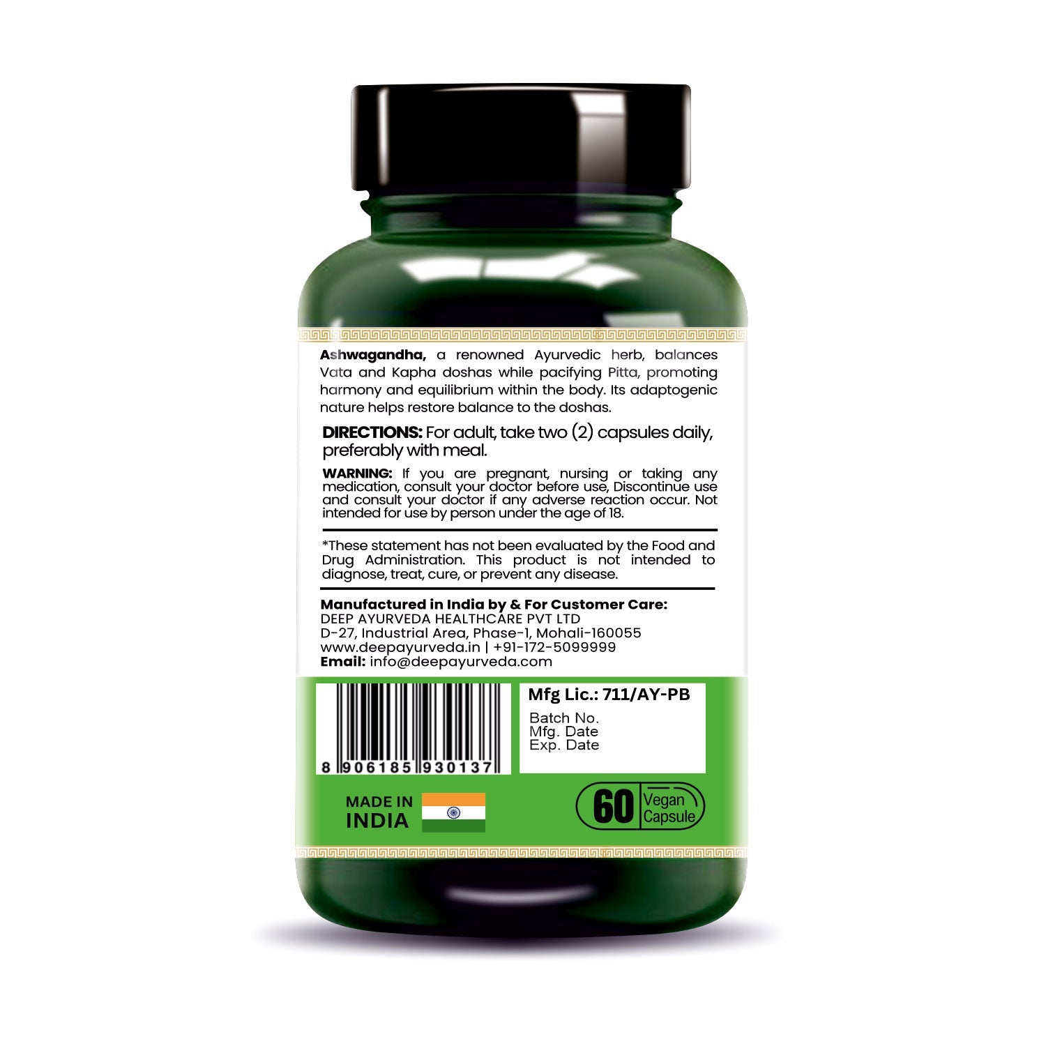 Ashwagandha Vegan Capsules offer holistic benefits, catering to all three doshas. Known as an adaptogen, Ashwagandha helps balance Vata, Pitta, and Kapha, promoting overall well-being. Experience reduced stress, improved energy levels, and Improve mental clarity with this ancient Ayurvedic herb, ensuring harmony and vitality for every dosha type.